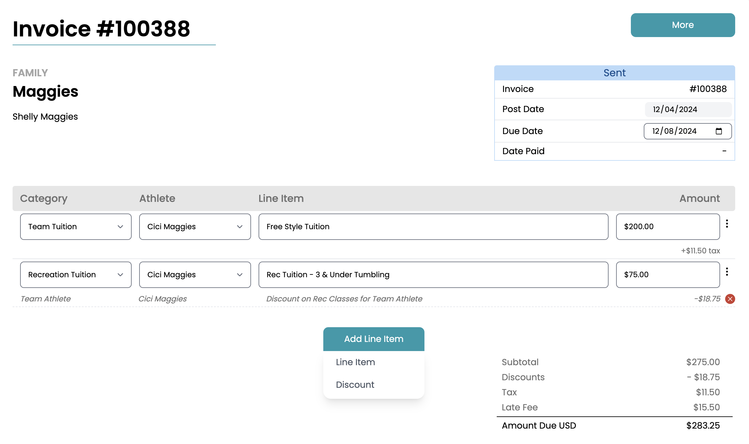 - Line Item Discounts: Will be a discount for a specific line item, reducing that one line item's total cost