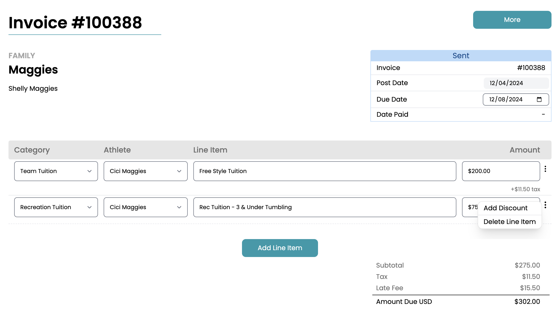 - You can add a discount to all items on the recurring or select the specific line item you want discounted.