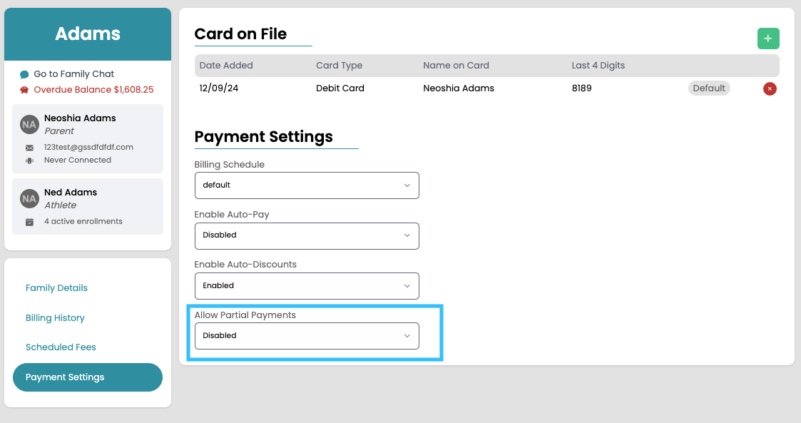 By default, all families have partial payments set to off. However, there are multiple reasons that you may decide to enable partial payments such as: