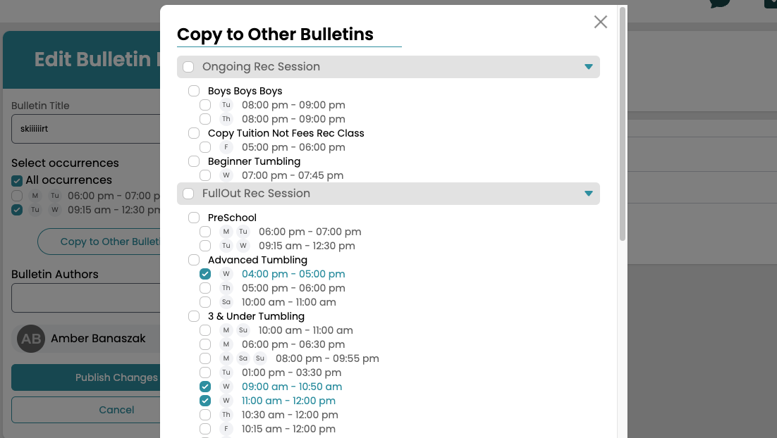 - Edit the bulletin and select the "Copy to Other Bulletin" button