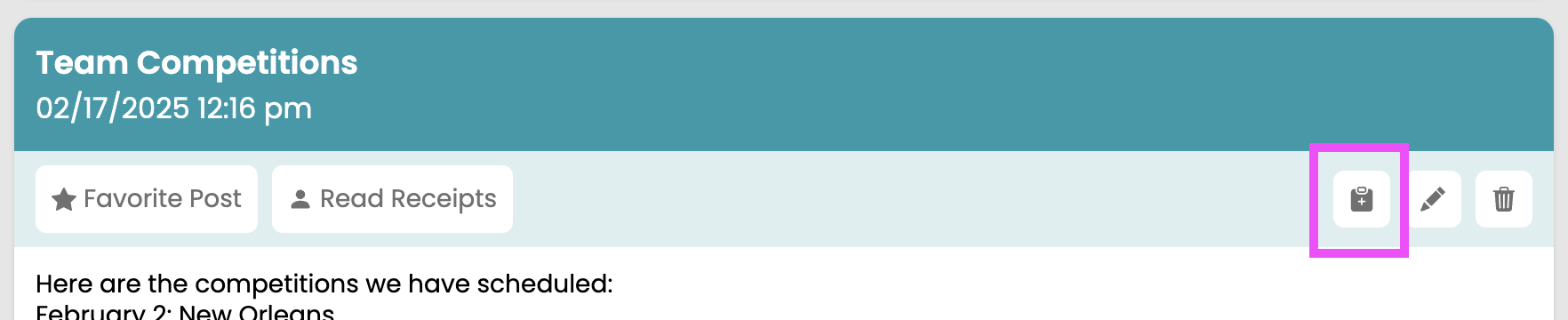 - Click the + icon that looks like a clipboard when viewing a bulletin from the bulletin menu