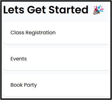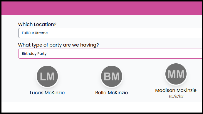 - Parents will select a location from the dropdown if the gym has multiple locations or party types